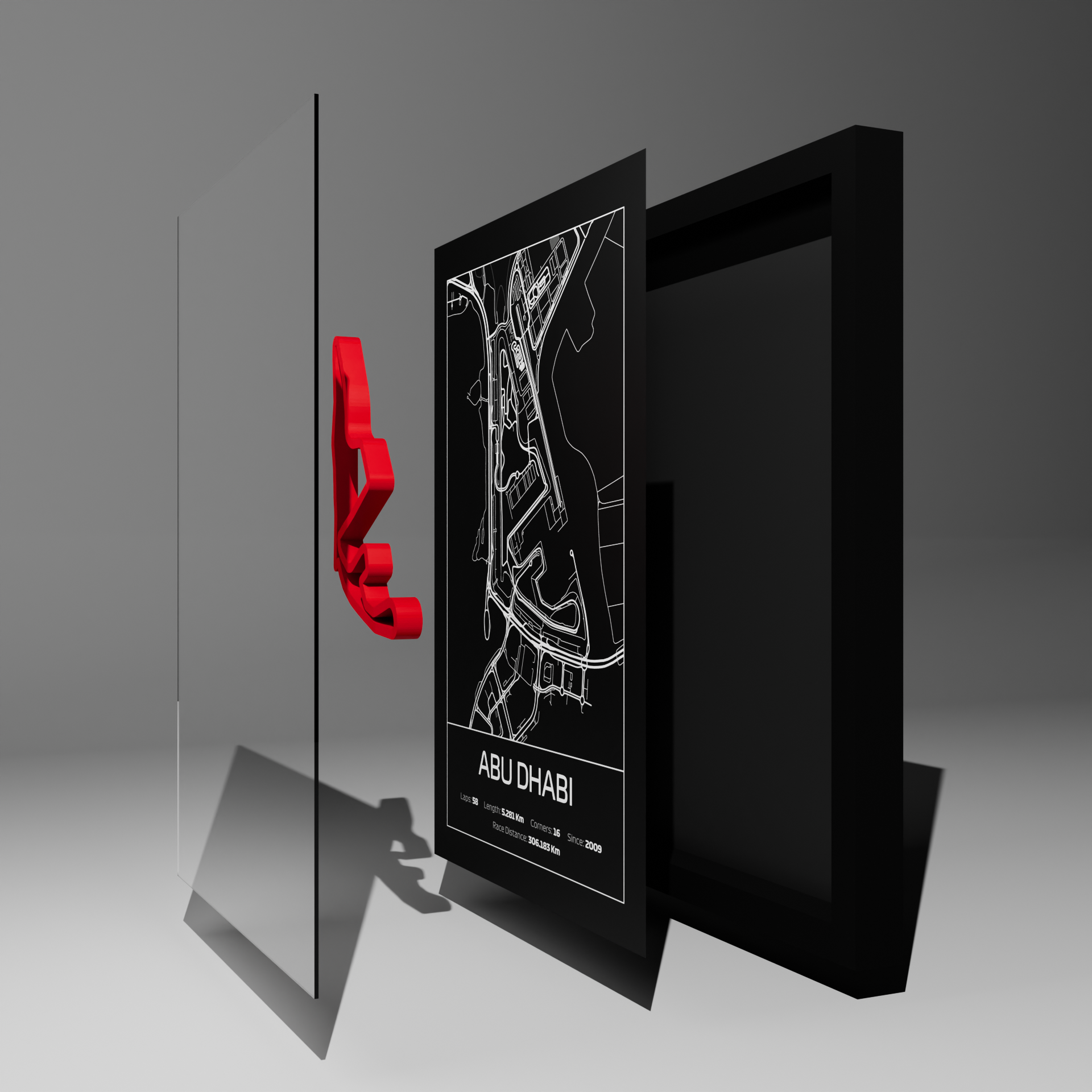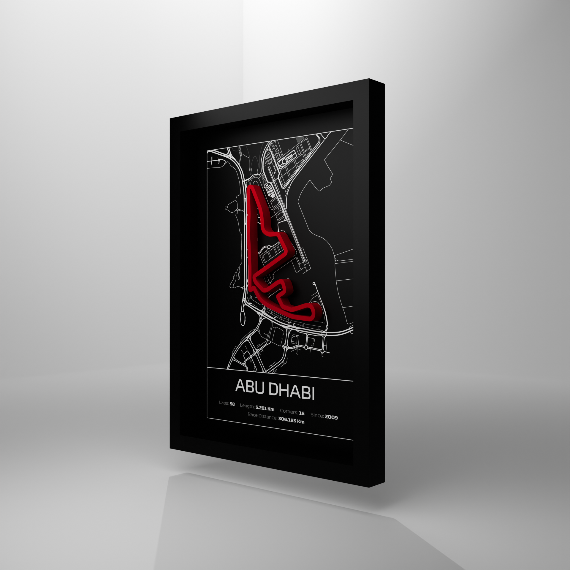 A stunning blend of speed and spectacle under the Arabian night sky. This handcrafted 3D frame captures the unique layout of Abu Dhabi’s iconic track, from its marina-side straights to its dramatic final sector. Designed with precision and crafted to perfection, it’s a one-of-a-kind tribute to Formula 1’s dazzling season finale.