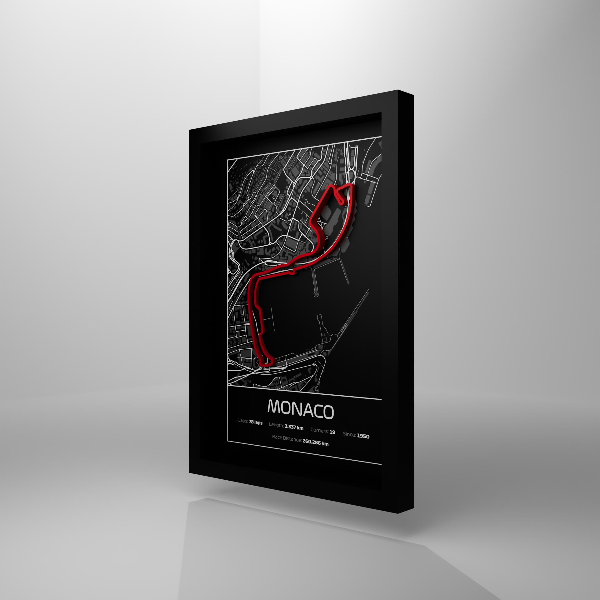 Brought to life in a handcrafted 3D masterpiece. From the tight corners of Fairmont to the legendary tunnel, every detail of the Circuit de Monaco is captured with precision. One-of-a-kind, just like the race itself — elegance, history, and adrenaline in one iconic frame.