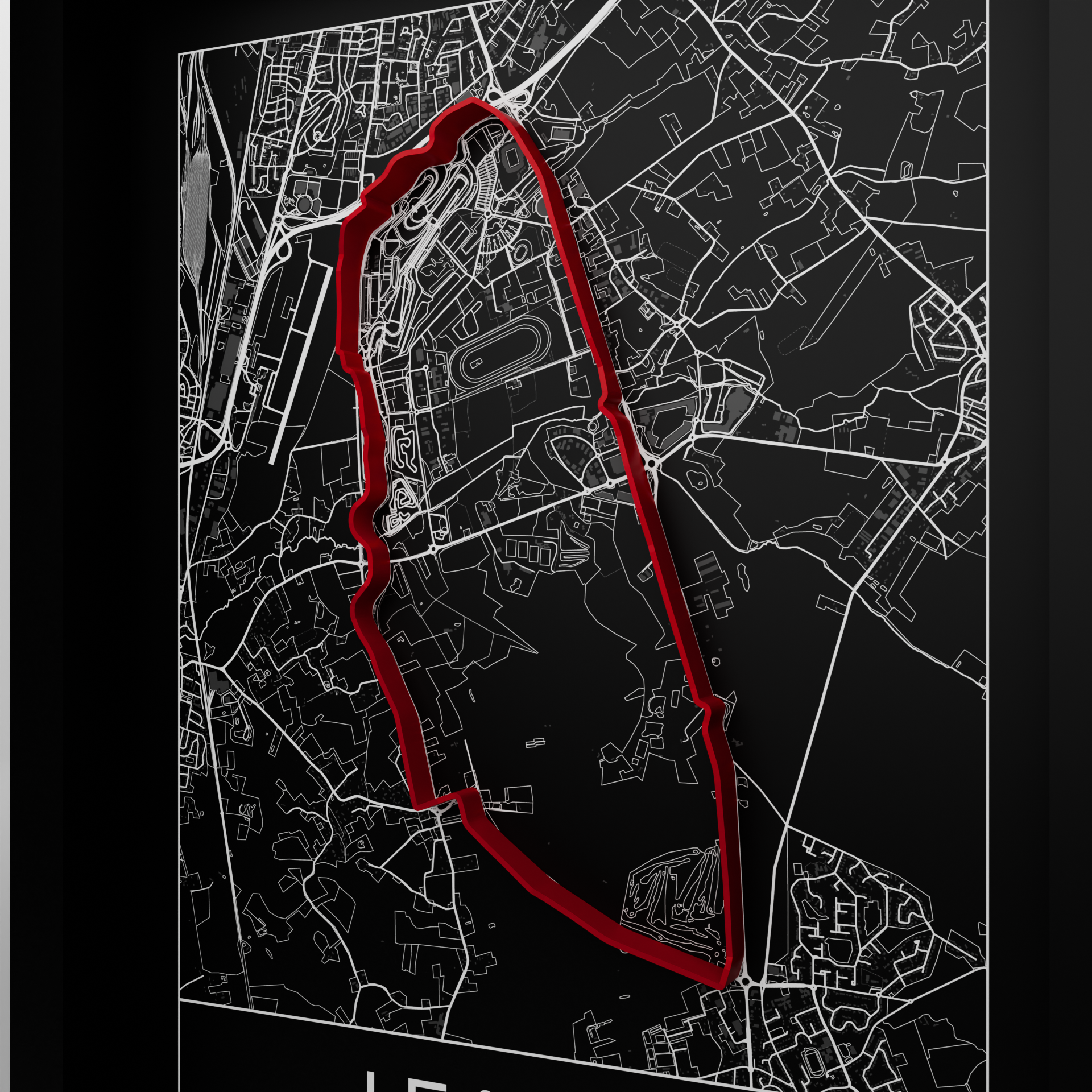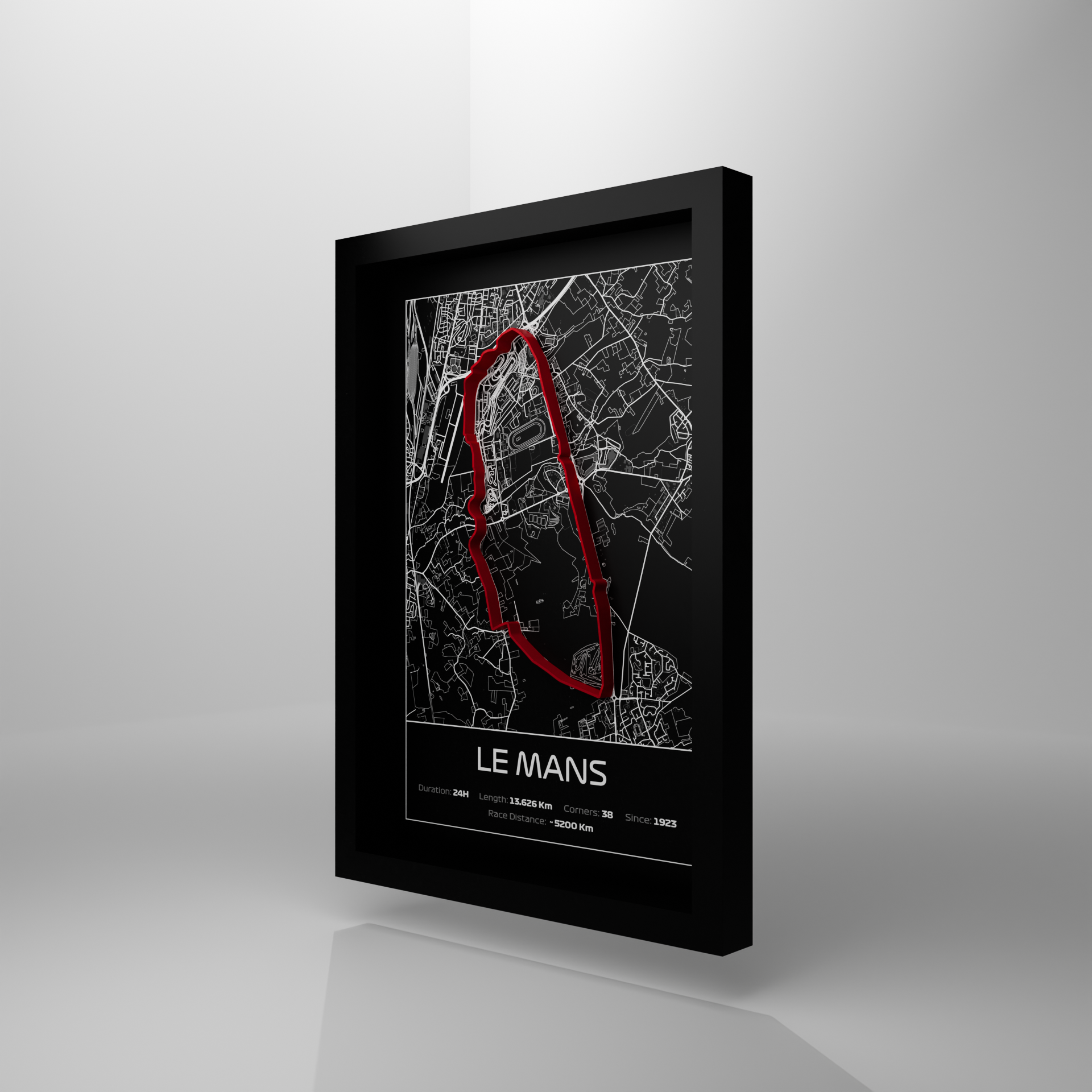 A tribute to the world’s most iconic endurance race, captured in a handcrafted 3D frame. From the Mulsanne Straight to the Porsche Curves, every detail of the legendary Circuit de la Sarthe is brought to life with precision. Crafted to perfection, a one-of-a-kind masterpiece for true motorsport legends.