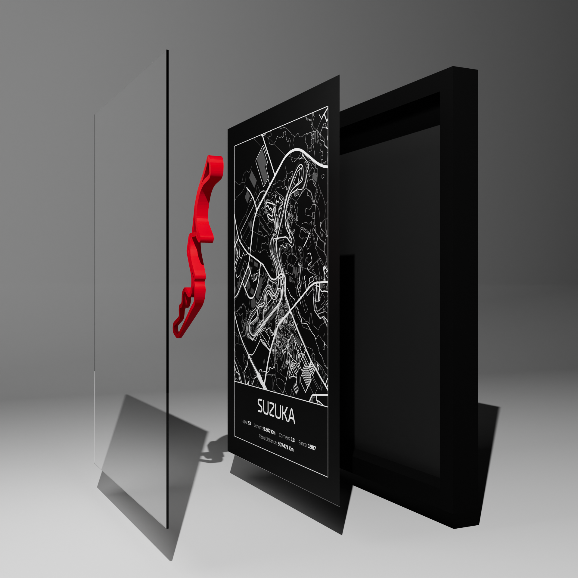 A masterpiece of speed, precision, and history. This handcrafted 3D frame captures the unique figure-eight layout and legendary corners like 130R and the S Curves. Designed with passion and crafted to perfection, a one-of-a-kind tribute to one of Formula 1’s most iconic tracks.